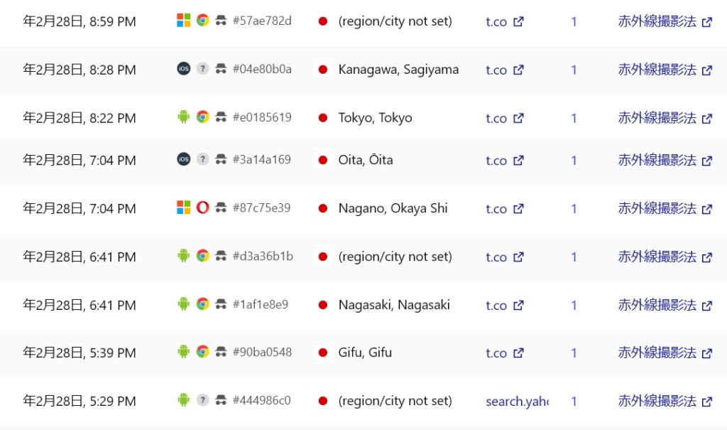 しかも一番下のYahoo!検索から来たものを除き、すべて「t.co」となっている。