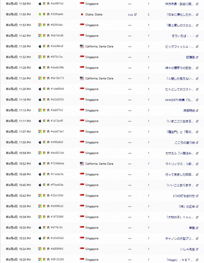 このシンガポールからのアクセスは常にこのパターンなんだけど、「Windowsでシーマを使っている人」と「Macでシーマ」を使っている人がいて、どちらも「Singapore」と表示されているけど、それ以外に「(region/city not set)」と表示される人がいる。