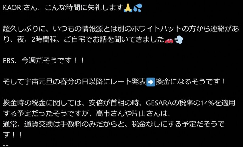 今回の「白封筒」では「EBS、今週だそうです!!」