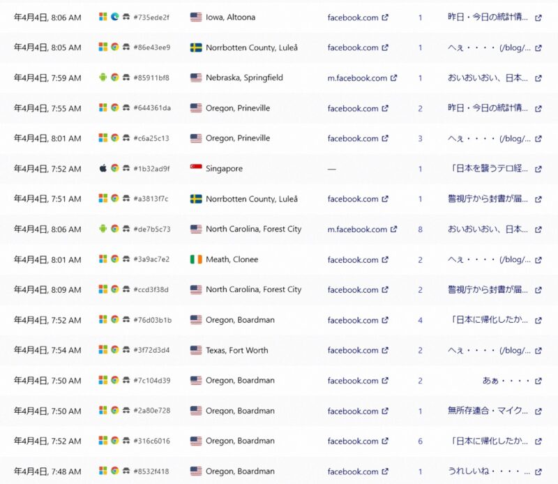こんな感じで、アメリカのfacebookに張り付いているロボットのアクセスなんだけど・・・