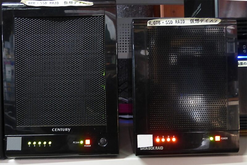 外付けのHDDケースのナカミのディスクが、4台と5台入りの二つのケース。