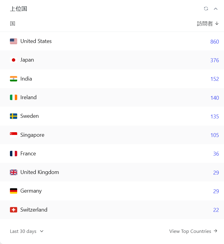 今回のトップはアメリカで、日本よりアクセスが多いし、続いてインド・・・