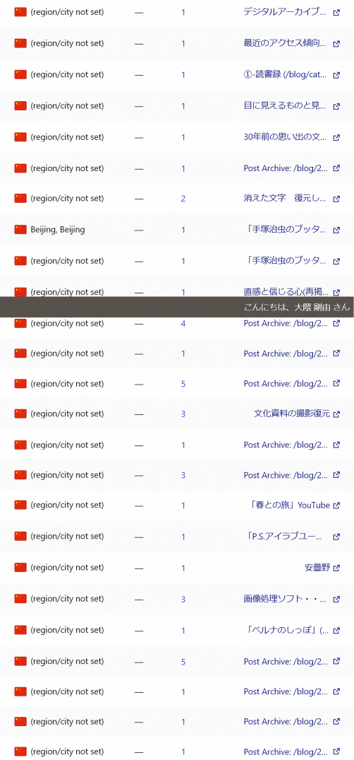 それに代わって「中国」からのアクセスがほぼ毎日ある・・・