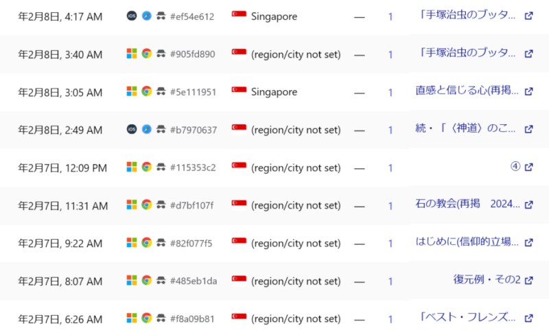 というものなのだが、どういうわけか、中国とシンガポールの「iフォン」と「Windows」と「Mac」で、同じページにアクセスされている。