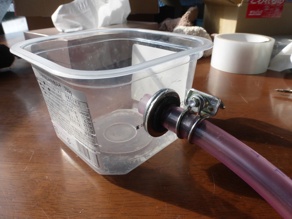 で、一寸頭をひねり、その容器から細いホースを使い、流し台に水を抜くことにした。