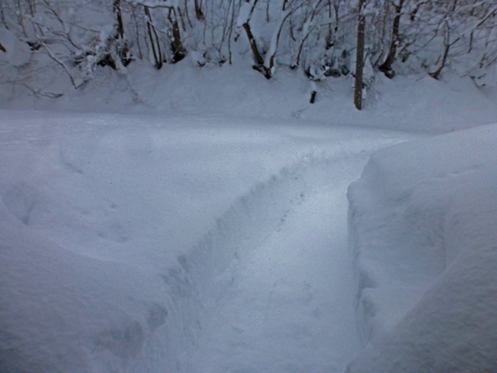 ちょっと心配しつつ、私有地のいつもの道を除雪始めたが、何とか前に進んだ・・・