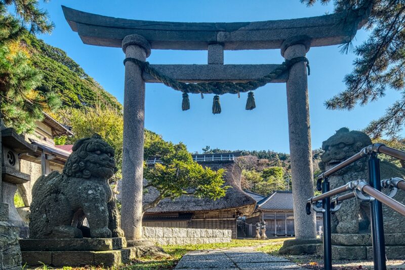 ここのサイトを見ると、随分と垢抜けしたデザインであるが、この神社の拝殿が今時珍しく「茅葺」とのこと。