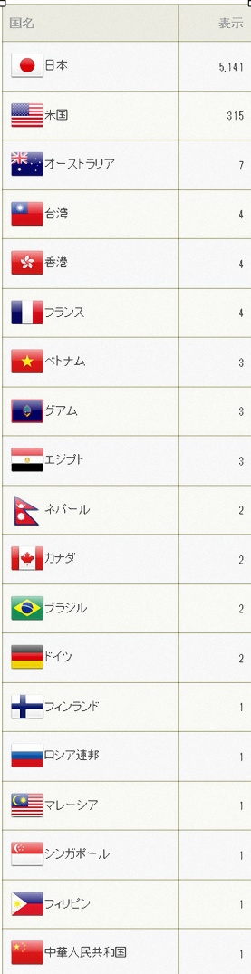 当時、当然「日本語」のブログであり、当然「日本」のアクセスがダントツで、海外はたぶん海外在住の「日本人」と思われる人のアクセスだと思う。