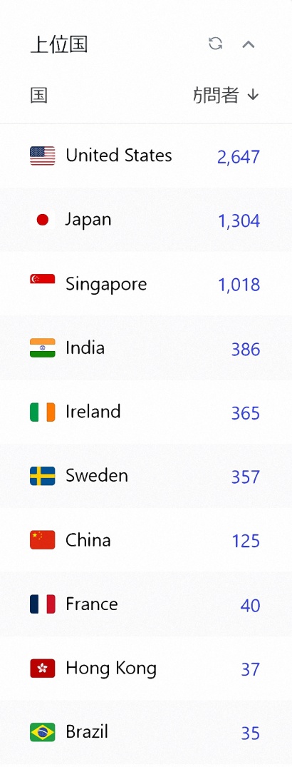 アメリカがダントツなのは、facebookにへばりついた複数のロボットが、即時読みに来る。